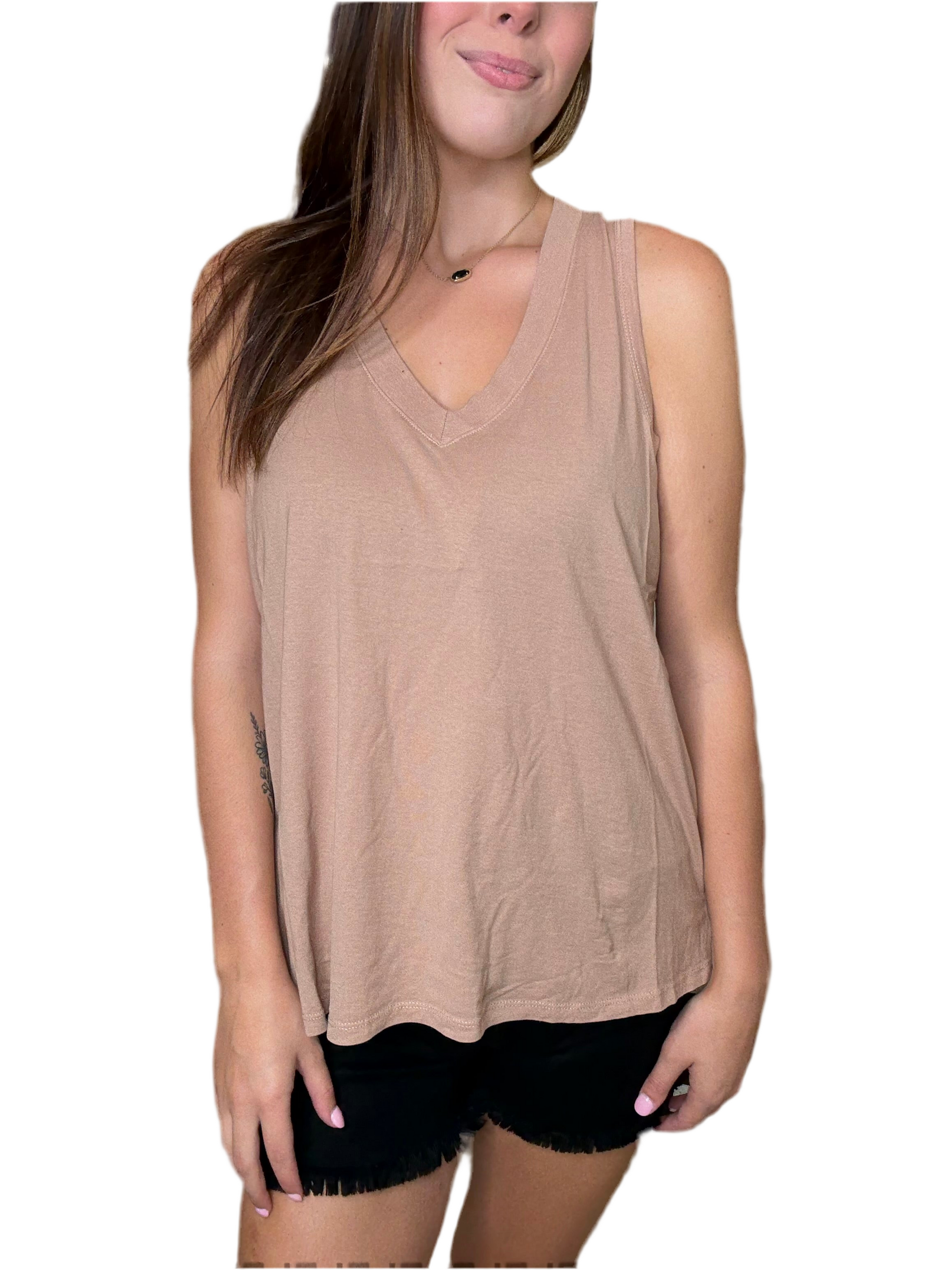 The California Tank in Iced Coffee is a timeless essential that brings comfort and style to any warm-weather wardrobe. Made from ultra-soft 100% cotton jersey with a premium heavy soft wash, this tank is designed to feel lived-in from the very first wear. The flattering V-neckline and relaxed fit make it a go-to piece for effortless layering or standout solo styling.