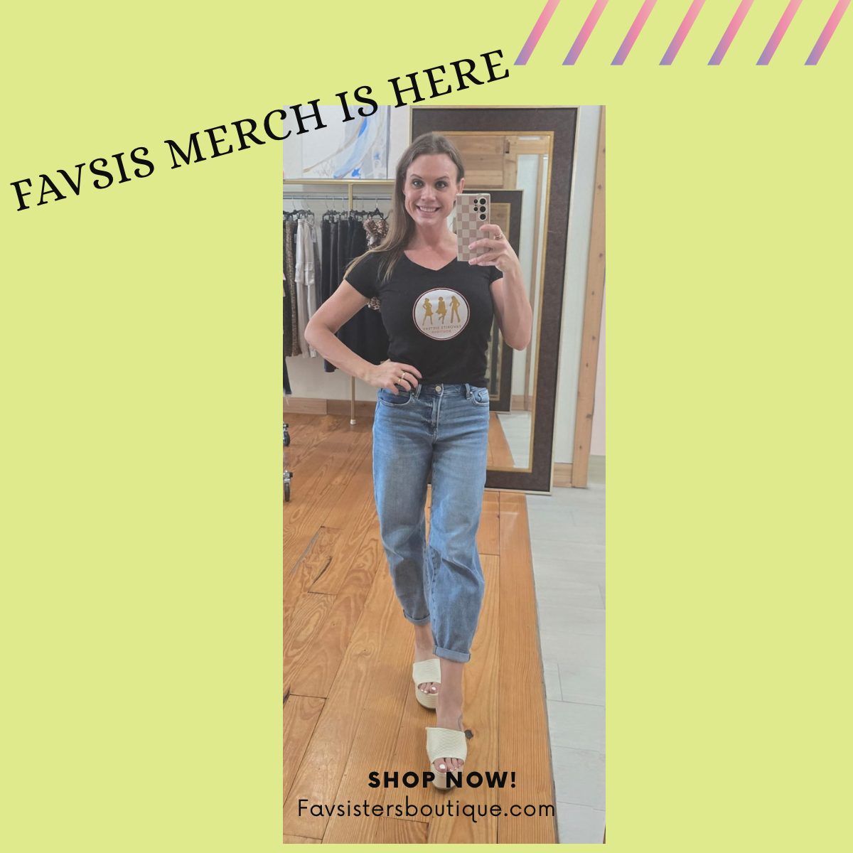Your new everyday go-to 🤍 The Fav Sis Signature Tee is soft, flattering, and made to rep your favorite boutique in style. Featuring a classic fitted silhouette with our signature Fav Sis graphic front and center, this tee pairs perfectly with denim, skirts, or layered under your favorite jacket. Easy, comfy, and cute enough to wear on repeat — just how we like it.