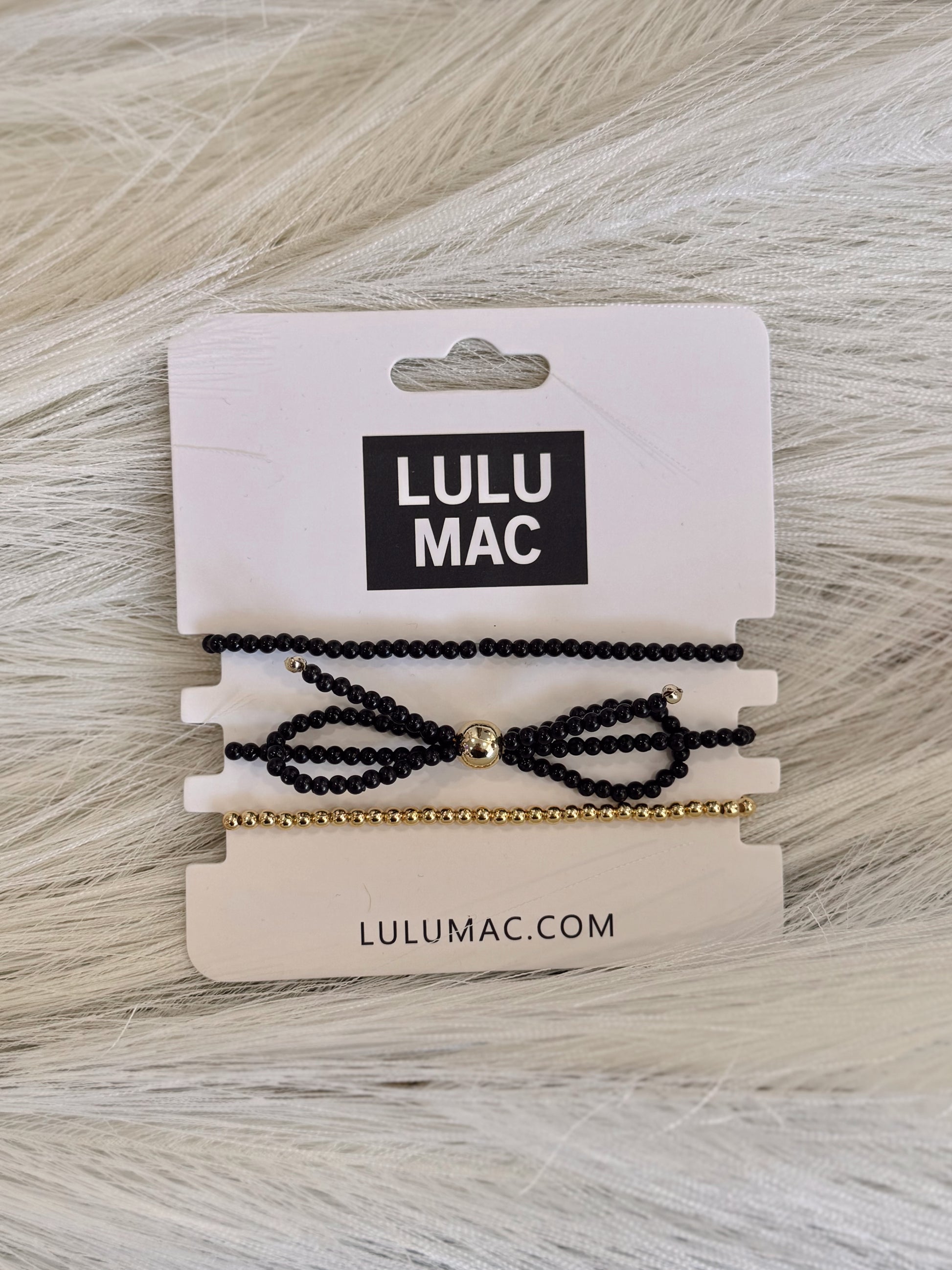 Effortlessly chic with a hint of edge. The Midnight & Gold Bracelet Set features a sleek mix of matte black beaded strands paired with a polished gold beaded bracelet for the perfect contrast. Designed to wear stacked together or styled separately, this set adds an elevated, everyday touch to any look—from casual tees to dressed-up nights out. A timeless combo you’ll reach for on repeat.
