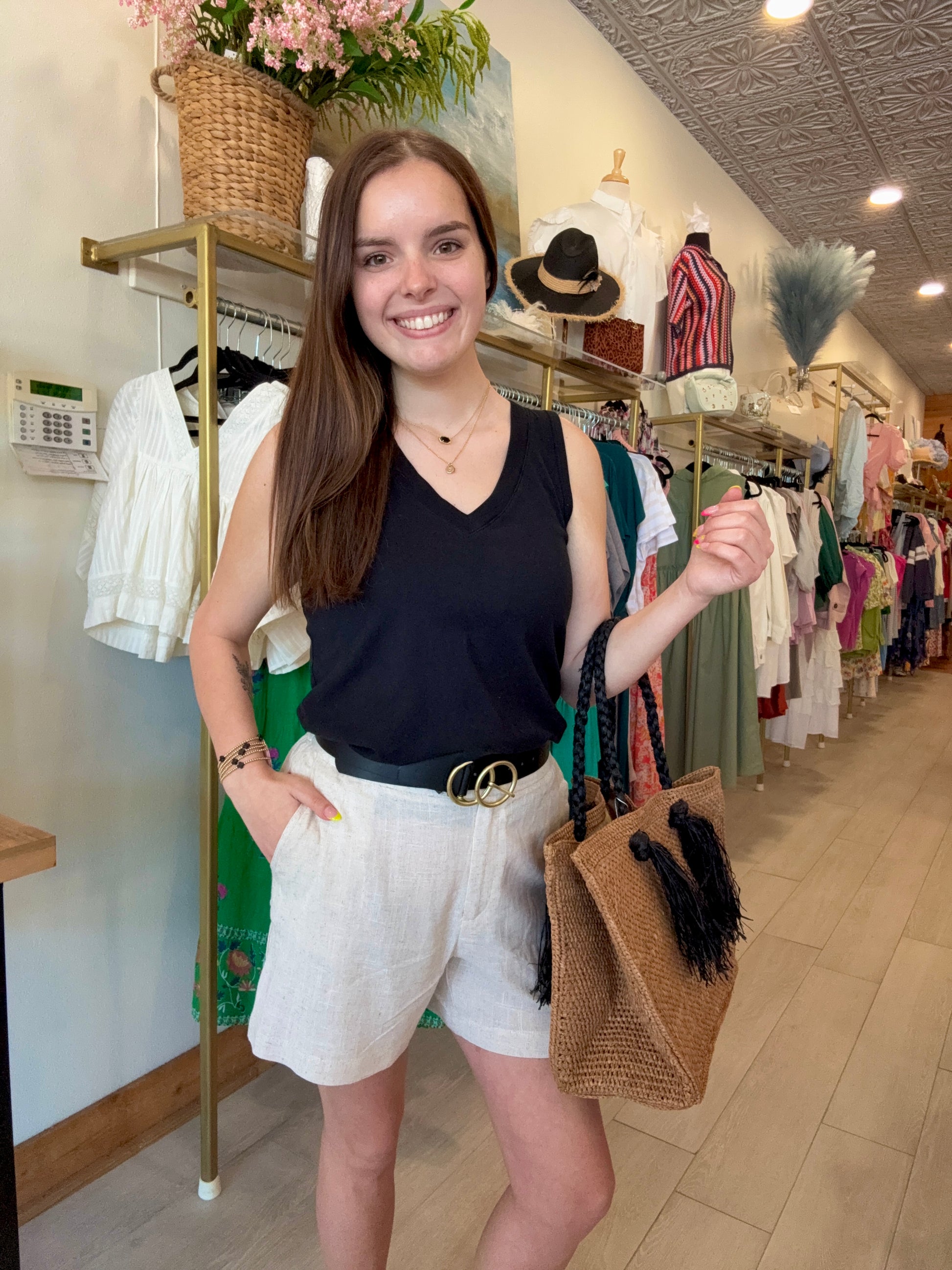 Breezy, lightweight, and endlessly versatile—our Barely Beige Linen Shorts are a warm-weather must-have. Designed with comfort in mind, they feature a relaxed fit, breathable linen fabric, and a flattering high-rise waist. The soft beige tone pairs effortlessly with everything from crisp whites to bold summer hues. Whether you're headed to brunch, the beach, or just lounging in style, these shorts are your go-to for casual chic.